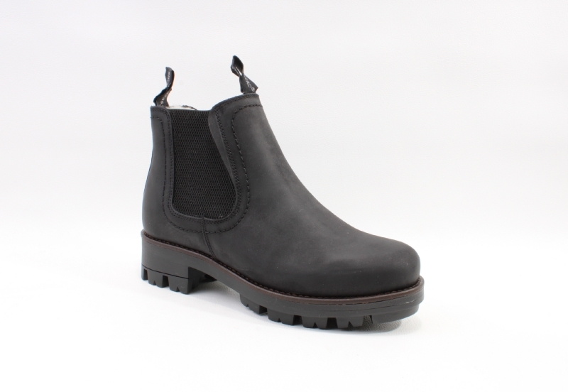 Ett par chelseaboots i skinn med insida i varm och skön fårskinn. Bootsen har en bred resår i sidorna utav skaftet och vävda hällor samt en grov yttersula i gummi.