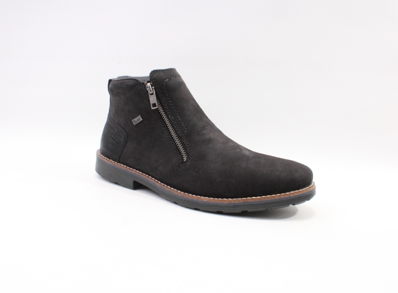 Ullfodrad boots till herr från Rieker. Ovandel i nubuck. Dubbla dragkedjor för ett enkelt insteg Rieker-TEX gör skorna starkt vattenavvisande samtidigt som de andas.