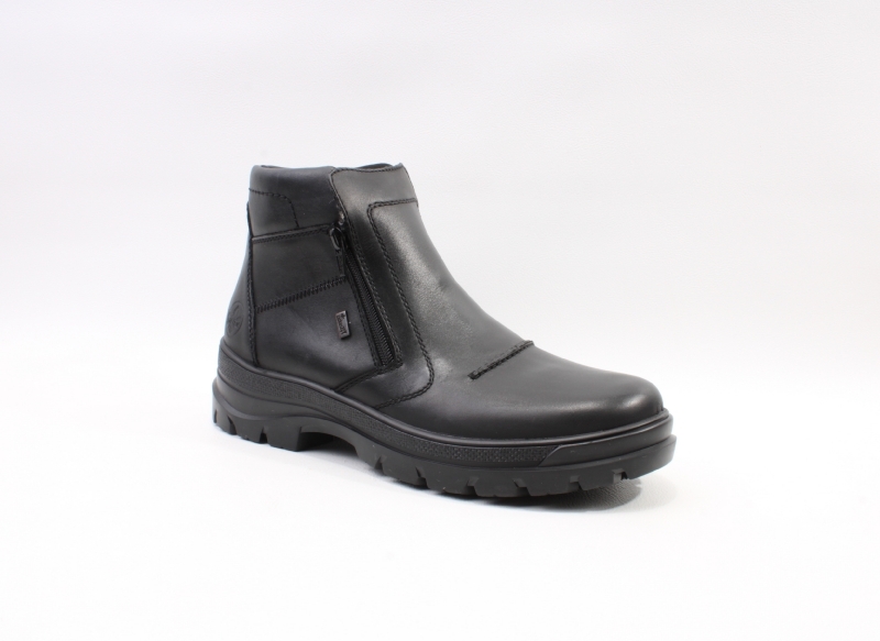 Ullfodrad vinterkänga till herr från Rieker. Ovandel i skinn. Dubbla dragkedjor för ett enkelt insteg. Inbyggda broddar i sulan. Dessa går att fälla ut vid halt väglag för extra säkerhet. Rieker-TEX gör skorna starkt vattenavvisande samtidigt som de andas.