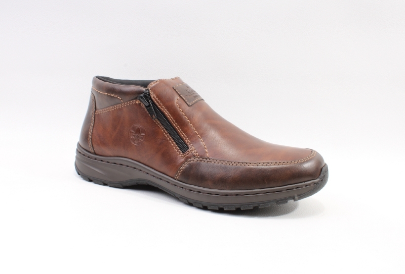 Herr skor med skaft från Rieker. Dubbla dragkedjor för enkel på- och avtagning. Foder i lammull samt en innersula i Antistress för extra komfort.