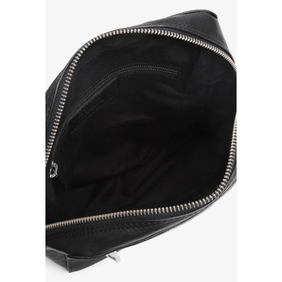 Klassisk och praktisk väska i vackert skinn. På väskans framsida finns en blixtlåsficka. Väskan består av ett huvudfack som stängs med ett blixtlås och inuti väskan finns en liten blixtlåsficka och en läderficka med plats för en mobiltelefon. Väskan har en axelrem i bomull som är justerbar.