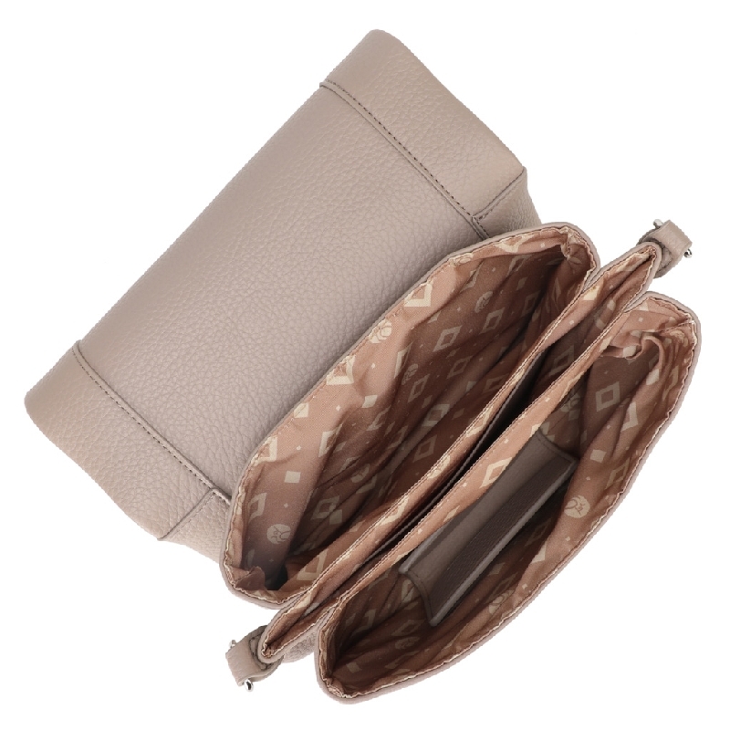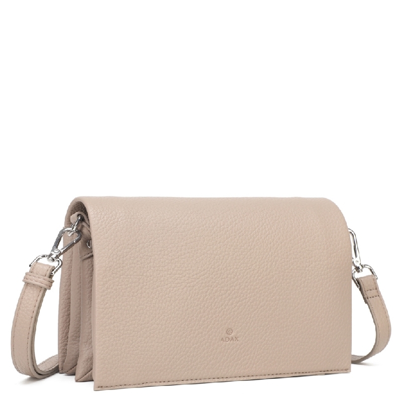 Stilren väska från Adax. Väskan stängs av ett lock med magnetlås. Två löstagbara axlremmar medföljer, en tunn i syntetläder samt en bredare textil. Axelremmen är också justerbar.
